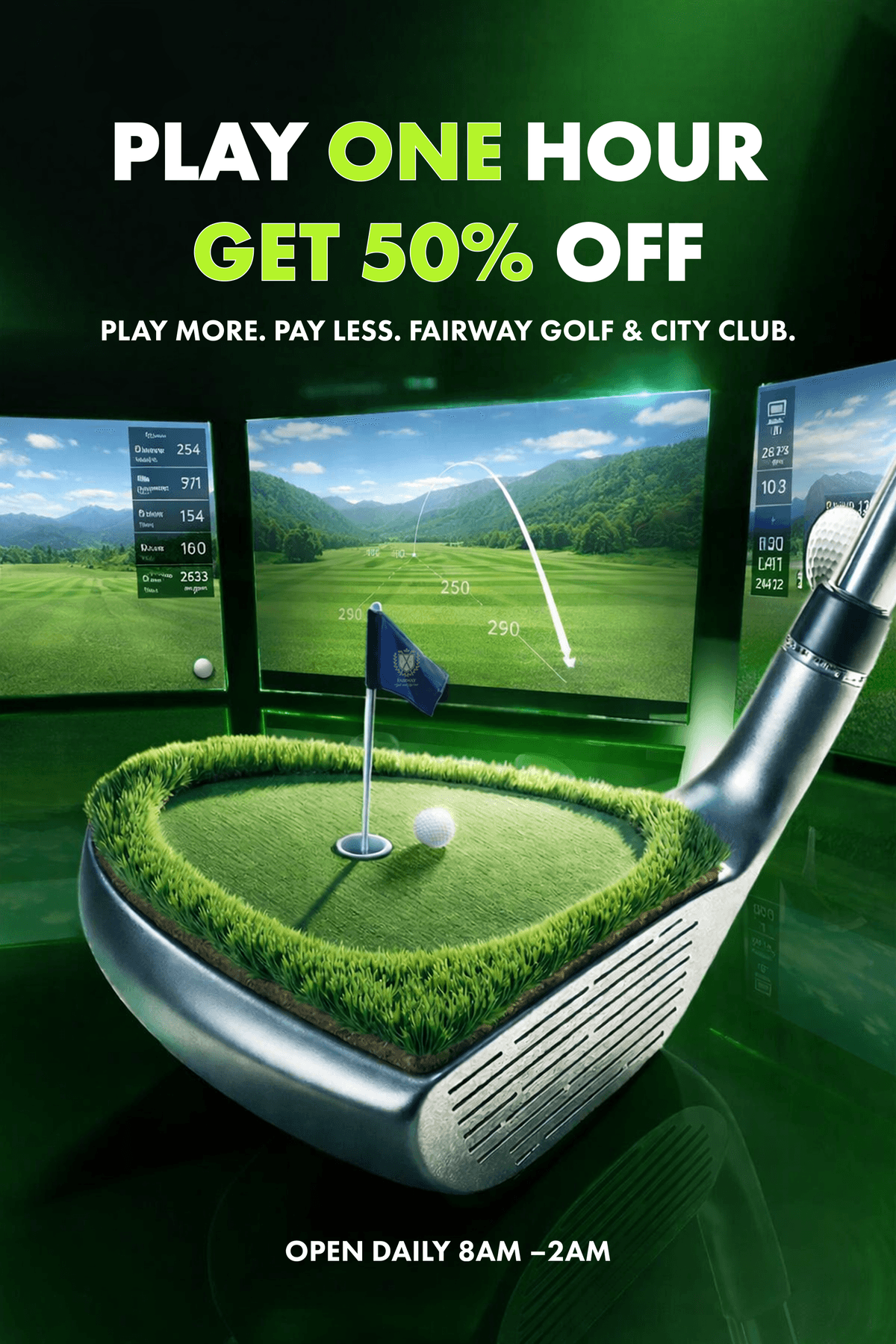 Indoor golf is played using advanced golf simulator technology that tracks the ball and club movement in real time. At Fairway Golf and City Club in Bangkok, our TrackMan golf simulators recreate real golf courses and provide accurate swing data, making indoor golf perfect for both practice and entertainment.
